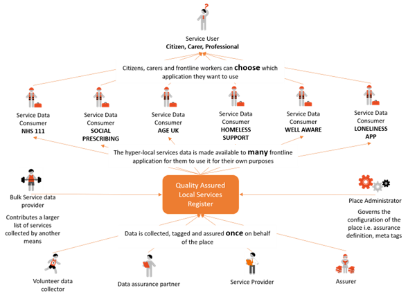 - Improve people’s lives by stimulating the market for digital sign-posting, targeted help & self-service through the availability of quality data